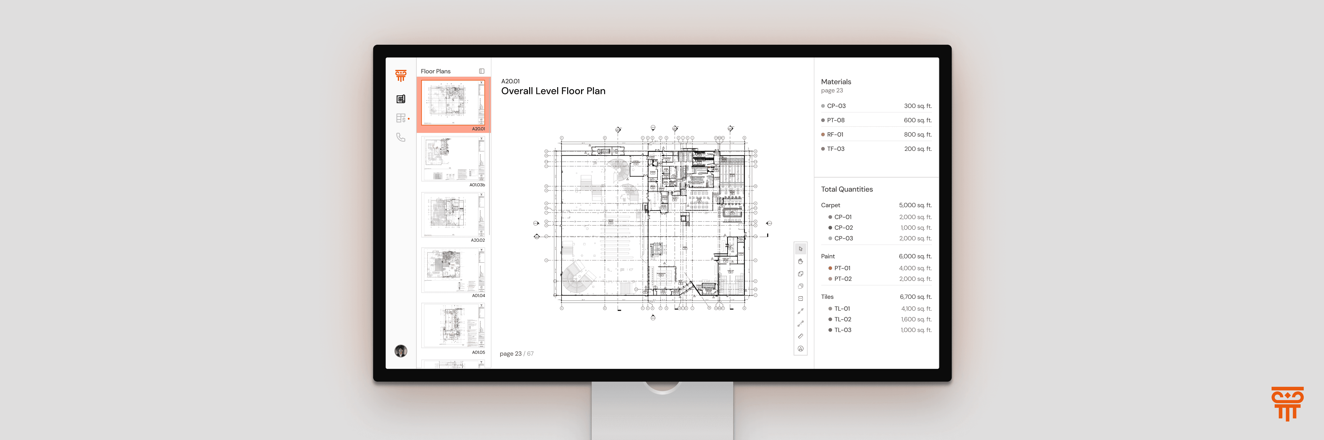Project managers upload the floor plans that require area tracing. Pillar quantifies the total amount of different materials automatically, which can be edited.